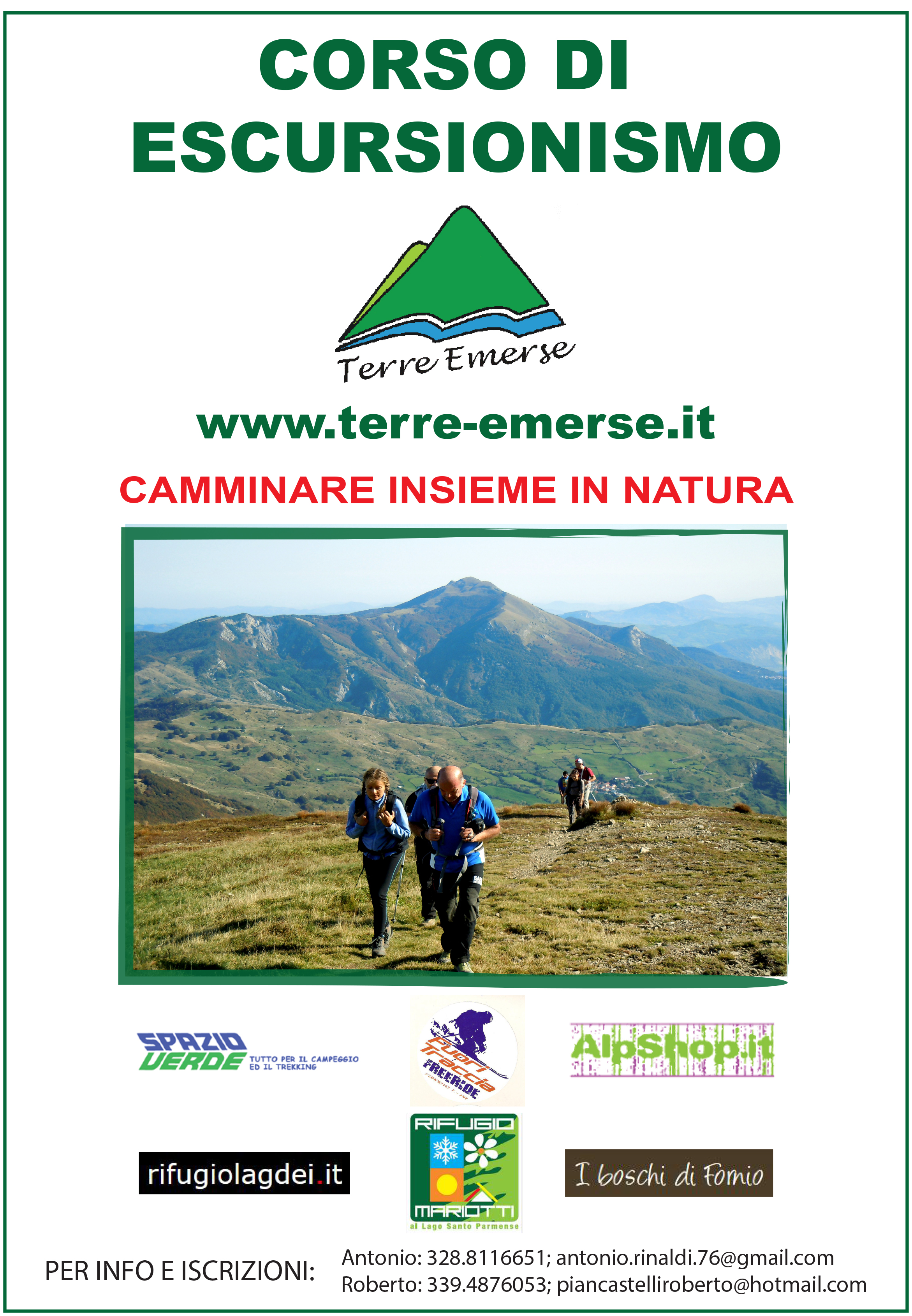 Organizzato da Terre Emerse Gruppo Guide Ambientali Escursionistiche della Provincia di Parma in collaborazione con i negozi di articoli per la montagna e outdoor Spazio Verde, Alp Shop, Fuori Traccia.