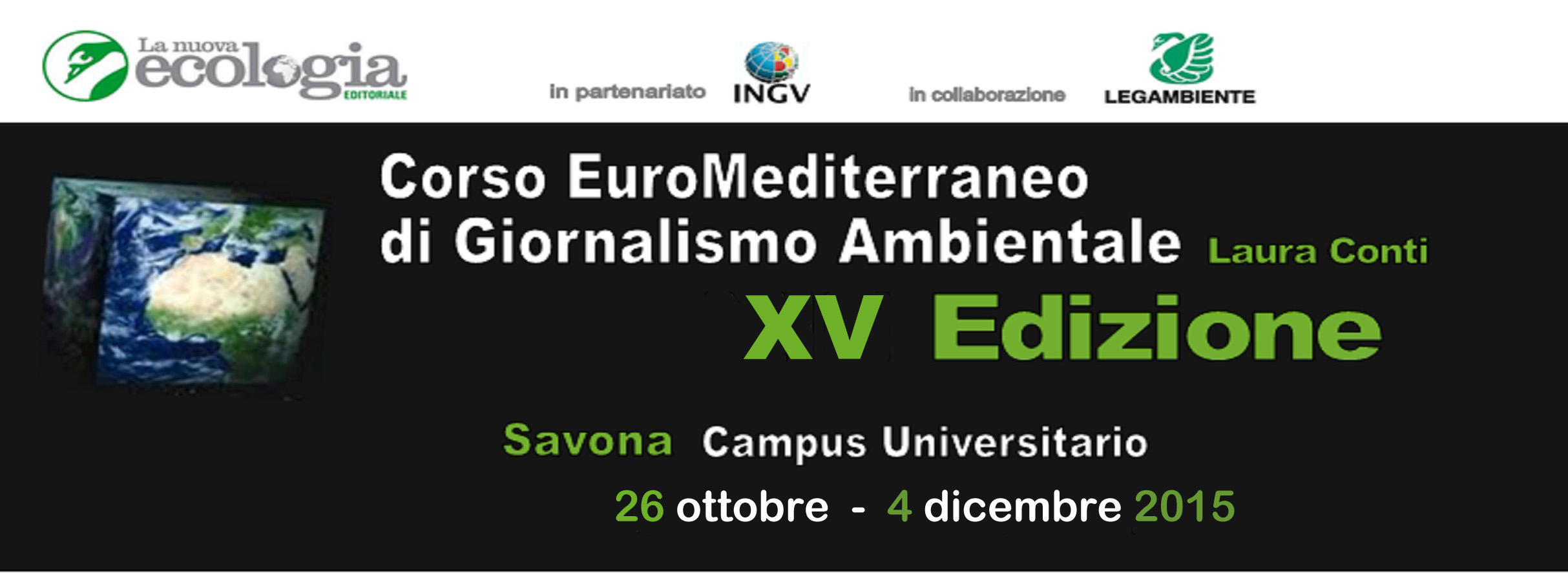 Il 26 ottobre ricomincia l’avventura! La XV edizione del Corso EuroMediterraneo di giornalismo ambientale Laura Conti si tiene per il settimo anno consecutivo nel Campus universitario di Savona e propone un’originale miscela di cultura, informazione e conoscenza del territorio. Rivolta a giornalisti professionisti e pubblicisti, che potranno ottenere crediti formativi riconosciuti dall’OdG ai fini della formazione continua, l’iniziativa è aperta anche a laureati e diplomati interessati alle conoscenze di base e alle tecniche dell’informazione ambientale. Il Corso si conclude il 4 dicembre e prevede la partecipazione di 20 giovani, tra italiani e stranieri, che possono usufruire di borse di studio. Seguono un percorso di formazione completo in cui si affrontano tematiche scientifico-naturalistiche di comunicazione giornalistica e di carattere normativo: dura sei settimane e prevede 220 ore di lezione tra teoria e pratica. Ogni studente lavora all’interno di un laboratorio redazionale e redige articoli finalizzati anche alla pubblicazione di uno speciale del mensile di Legambiente, La Nuova Ecologia, che viene redatto durante il workshop. Una fase di lavoro in cui gli studenti realizzano servizi giornalistici sulle valenze naturali e sociali, le risorse, i problemi e le opportunità di sviluppo dell’area. Una volta terminato il corso è possibile partecipare a stage presso testate giornalistiche e uffici stampa.