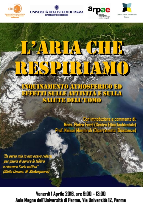 Venerdì 1 aprile, dalle 9.00 alle 13.00 presso l’Aula Magna dell’Università di Parma, via Università 12 si terrà l’incontro pubblico “L’aria che respiriamo – inquinamento atmosferico ed effetti sulle attività e sulla salute dell’uomo”.