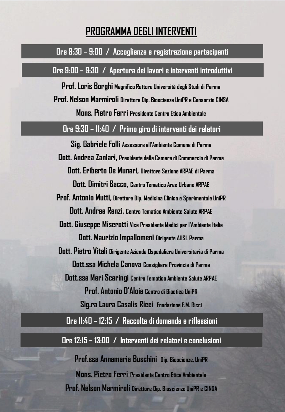 Il Dipartimento di Bioscienze dell’Università degli Studi di Parma ed il Consorzio Interuniversitario Nazionale per le Scienze Ambientali (CINSA), in collaborazione con l’Agenzia per la Prevenzione, l’Ambiente e l´Energia dell’Emilia Romagna (ARPAE) ed il Centro di Etica Ambientale di Parma organizzano un incontro per discutere di queste tematiche con i cittadini e le istituzioni.