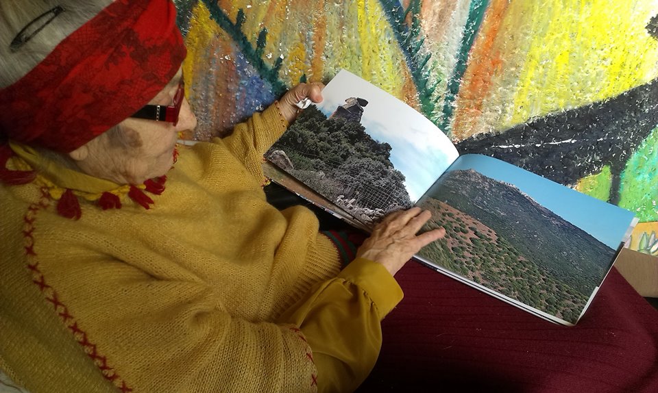 A casa di Bonaria Manca, con la nipote Paola Manca. Bonaria e la famiglia – con le pecore – si trasferiscono in Maremma negli anni ’50, quando lei aveva 20 anni. Qui – sempre da pastore – inizia una nuova vita, che tuttavia viene davvero rivoluzionata quando, persi i propri cari, inizia a dipingere. Bonaria ricama, canta, ma soprattutto usa colori e forme per descrivere le visioni e i ricordi di una vita. Una fantasmagoria di immagini le cui tinte decise sono accostate con vera bravura, a formare sorprendenti composizioni, piene di fascino, di un po’ di mistero ma tanta tanta vivacità e semplice, intensa umanità.
