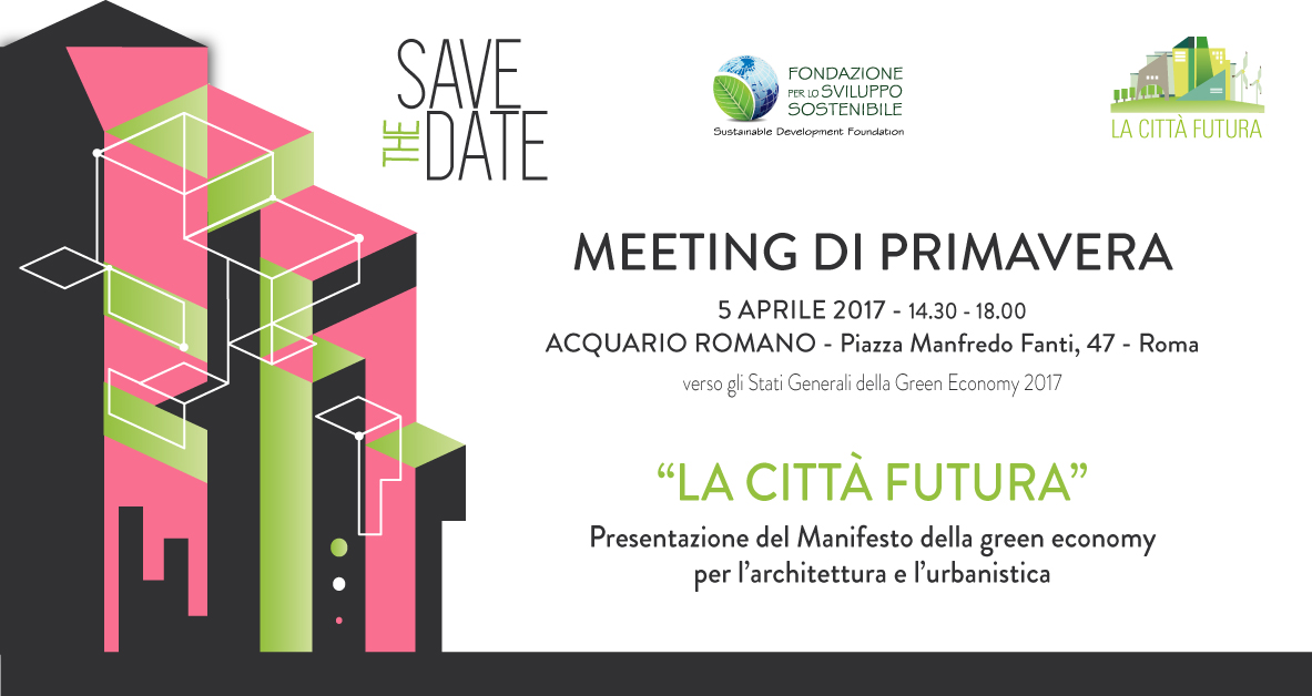 Il Meeting di Primavera del 2017, organizzato dalla Fondazione per lo Sviluppo Sostenibile in preparazione degli Stati Generali della Green Economy 2017, presenterà quest’anno il Manifesto della green economy per la città futura.