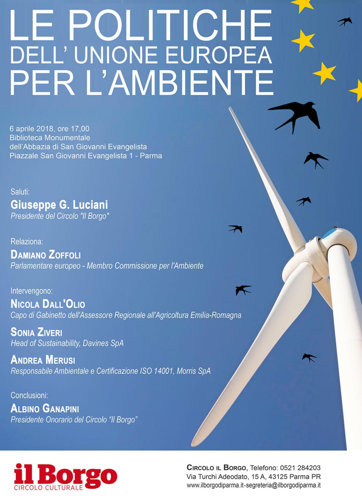 Venerdì 6 aprile si terrà a Parma un convegno dal titolo: “Le Politiche dell’Unione Europea per l’Ambiente”.