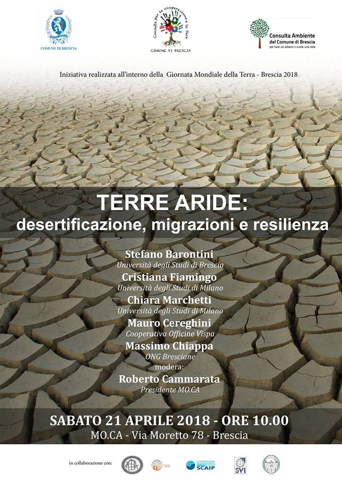 Sabato 21 aprile, in preparazione della Giornata Mondiale per la Terra, si terrà a Brescia il convegno “Terre aride: desertificazione, migrazioni e resilienza“.