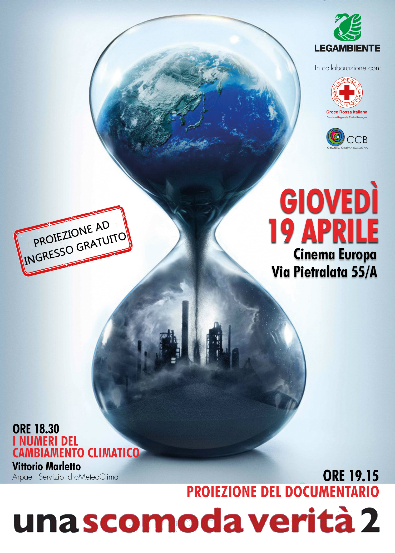 Il prossimo 19 aprile vi aspettiamo all’Europa Cinema di Bologna, a partire dalle ore 18:30, per approfondire i dati sul cambiamento climatico assieme a Vittorio Marletto (Servizio IdroMeteoClima di Arpae). A seguire, dalle ore 19:15, la proiezione ad ingresso gratuito del documentario “Una scomoda Verità 2”.