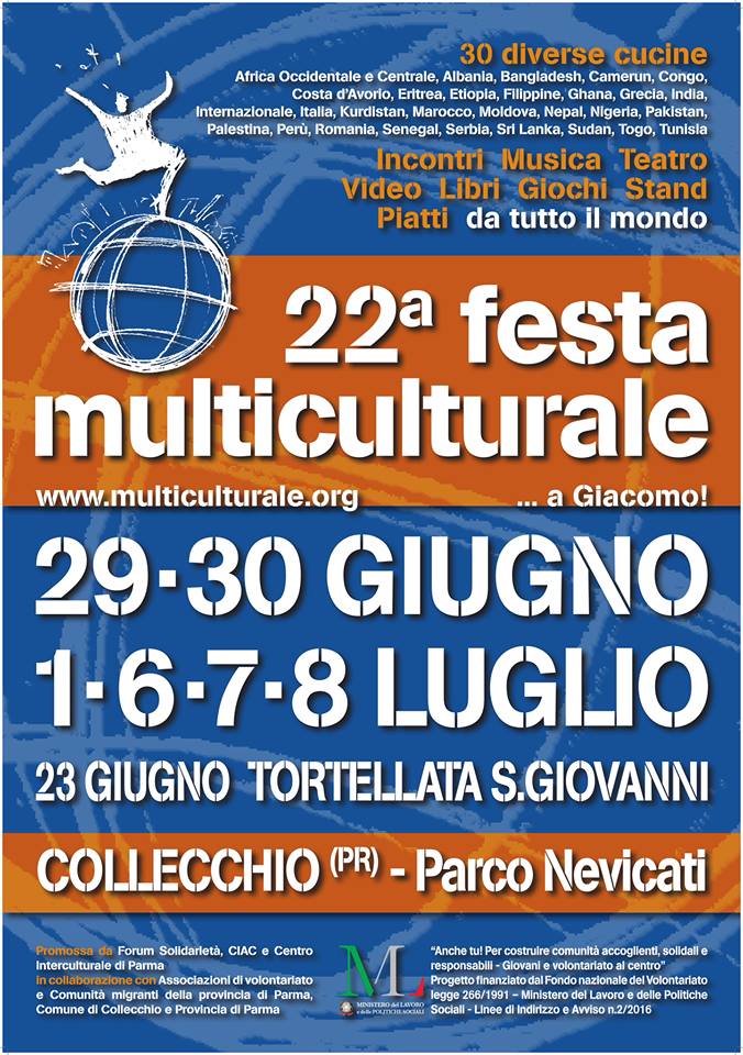Venerdì 29 giugno inizia a Collecchio una nuova edizione dell’ormai storica “Festa Multiculturale”. Come gli anni scorsi il bellissimo Parco Nevicati si riempirà di stand, iniziative e di persone di tante nazionalità diverse.