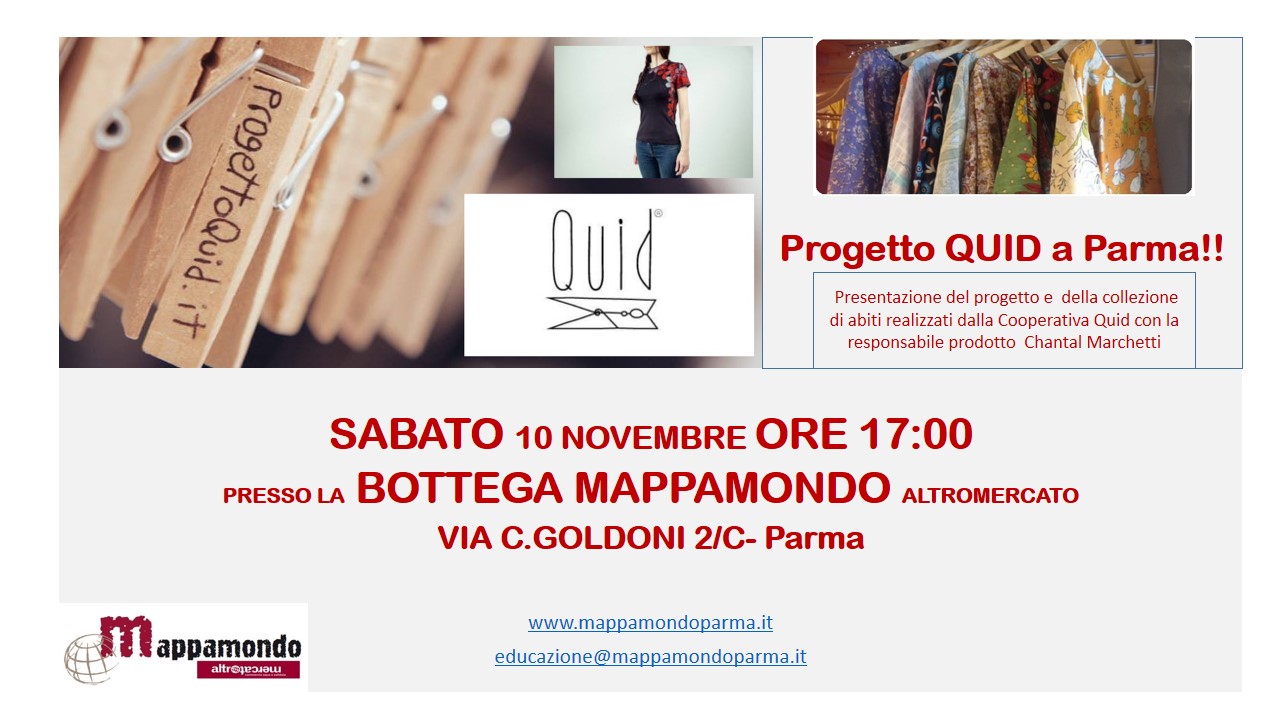 A tal proposito sabato 10 novembre alle ore 17 è in programma, presso la Bottega, la presentazione dei capi di abbigliamento prodotti dal progetto QUID.