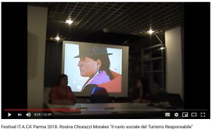 Rosina Chiurazzi Morales dell’agenzia Viaggi Solidali e responsabile del progetto Migrantour è stata una delle relatrici del convegno “Sai cosa c’è dietro? Mangiare, Vestire, Viaggiare: tre proposte di sostenibilità” che si è tenuto all’interno dell’ultima edizione parmense del Festival del Turismo Responsabile “IT.A.CA’ Migranti e Viaggiatori”. A dialogare con Rosina è stata Irene Binini dell’associazione “il Taccuino di Darwin”.
