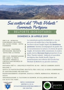 Al termine della camminata, la nostra guida storica Giovanni Sassi presenterà il suo libro “Il Prete Volante”, dedicato al sacerdote partigiano Don Guido Anelli. Dopo la presentazione sarà offerto dal Circolo San Michele di Belforte un piccolo rinfresco. La presentazione del libro si terrà alle ore 15 presso la sede del circolo in località Belforte n.135.