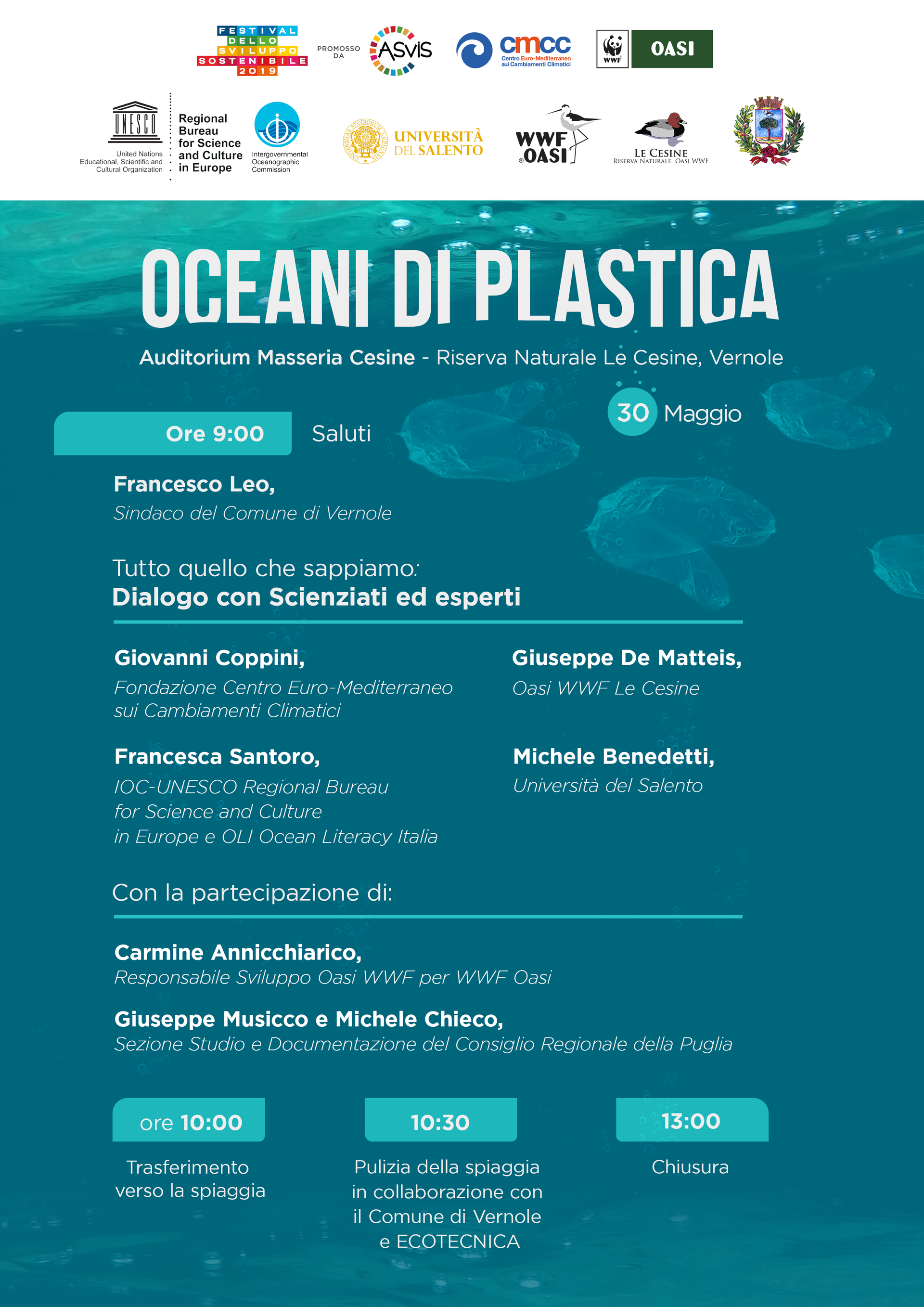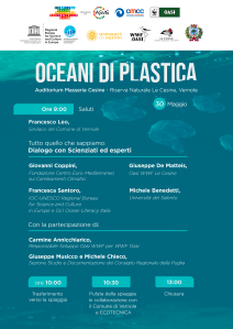 Giovedì 30 maggio presso l’Auditorium Masseria Cesine della Riserva Naturale Le Cesine, Vernole, si terrà l’iniziativa “Oceani di Plastica”.