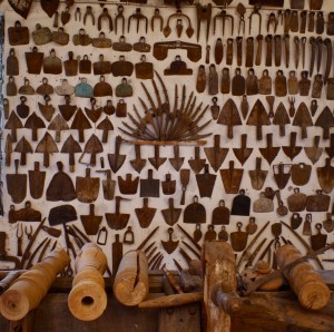 Ma le cose all’interno del Museo non si limitano a parlare. A volte gridano. Passando per le varie stanze sembra quasi di sentire lo sgomento del ferro di fronte agli sprechi perpetrati dalla civiltà odierna. Di ferro infatti è la lama della falce che, troppo usurata per poter tagliare il grano, è stata riconvertita in coltello. Di ferro è il filo con cui si aggiustava tutto, dalle sessole ai testi con cui si cuoceva il pane. Di ferro sono i chiodi che tengono salda la suola di uno scarpone consumato. E sempre di ferro sono le gabbiette di protezione per i fiaschi che i contadini si portavano nel campo durante le lunghe giornate di lavoro. Il vetro costava caro: romperlo era un lusso che non ci si poteva permettere. Ma gridano pure i pantaloni da lavoro rattoppati all’infinito e le scarpette con la “rimonta”, quest’ultima applicata affinché si adattassero alla crescita del ragazzo. Chiedete a loro cosa sono l’obsolescenza programmata e l’usa e getta: risponderanno che si tratta non di parole, ma di peccati.