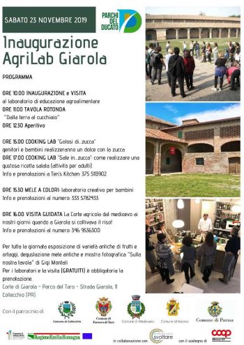 Il prossimo sabato 23 novembre sarà infatti inaugurato il nuovo laboratorio di educazione agroalimentare “AgriLab Giarola” costituito da una saletta per il gioco e la lettura e da una cucina attrezzata per la didattica e la formazione rivolte al pubblico e alle scuole, in cui potranno realizzarsi incontri e cooking lab per i cittadini e le classi.
