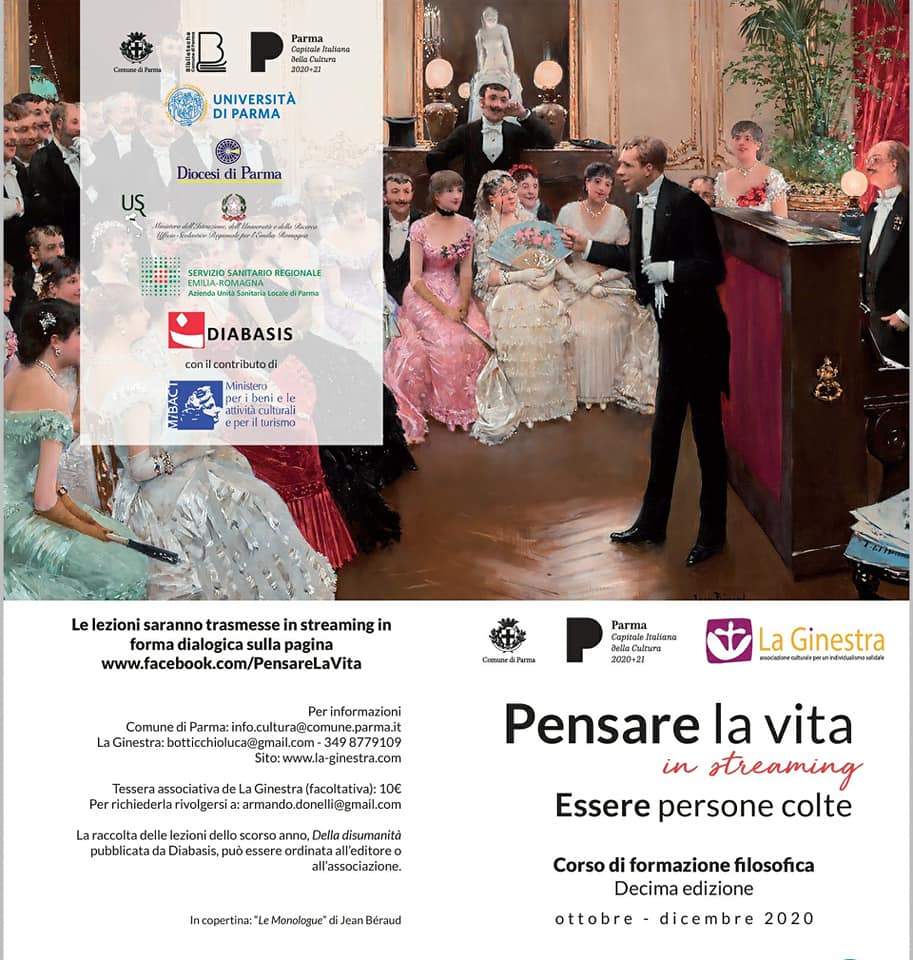 Fino al 7 dicembre è in programma la X edizione del corso di formazione filosofica Pensare la vita, che quest’anno si svolgerà in streaming a causa dell’emergenza COVID-19. Un’edizione speciale, declinata su Parma Capitale italiana della Cultura e dedicata al tema Essere persone colte: una riflessione multidisciplinare.