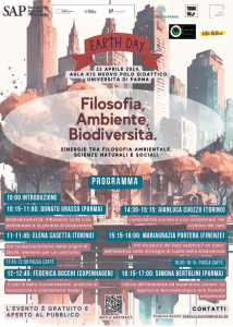 L’Unità di Filosofia dell’Università di Parma (Dipartimento DUSIC) è lieta di annunciare la prima giornata studio dedicata alla filosofia ambientale, intitolata “Filosofia, Ambiente, Biodiversità: Sinergie tra Filosofia Ambientale, Scienze Naturali e Sociali“. L’evento avrà luogo il 22 aprile 2024 presso l’Aula K15 del Nuovo Polo Didattico dell’Università di Parma, nell’ambito delle attività dell’Environmental Humanities Lab.