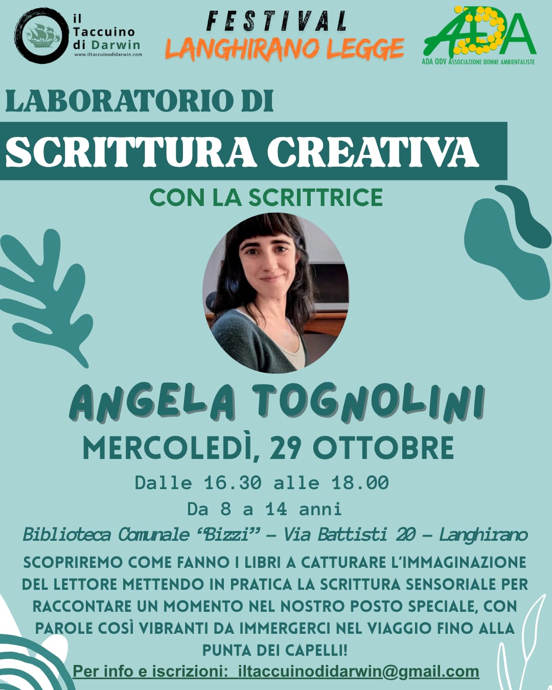 Mercoledì 29 ottobre, dalle ore 16.30 alle 18.00, si terrà un laboratorio di scrittura creativa con la dott.ssa Angela Tognolini presso la biblioteca comunale “Bizzi” di Langhirano (PR) in via Battisti, 20.